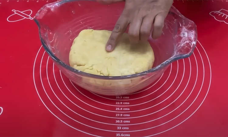 Приготовьте песочное тесто. В миску просейте муку и натрите туда замороженное сливочное масло, постепенно обваливая его в муке. Добавьте сахар, разрыхлитель, соль и ванилин. Вбейте одно яйцо и один желток, второй белок оставьте для начинки. Постепенно влейте ледяную воду и соберите тесто в комок, не вымешивая его долго.